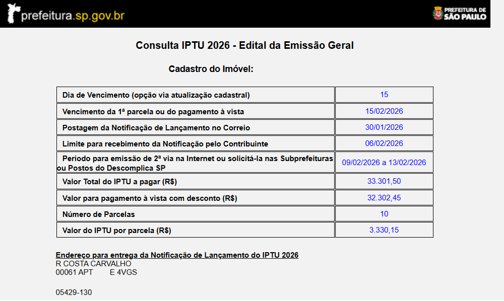 r. Costa Carvalho, 61 – apartamento acima do 10º andar